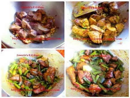 Put the pan on high heat, add 2 tbsp olive oil. Fry the onions and green bell pepper. Fry together for 3-4 minutes, reserve these to a large bowl.
