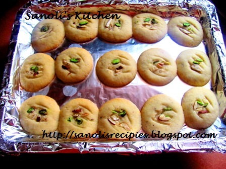 Here, I cut with my knife and try to give each cookie in a square shaped. Use a metal spatula to lift and transfer to cookie sheet. The cookies will not spead during baking, so they may be arranged quite close together. Set the sheets aside. Gather up, knead and re-roll the remaining dough scraps, likewise cutting and arranging on a cookie sheet.
